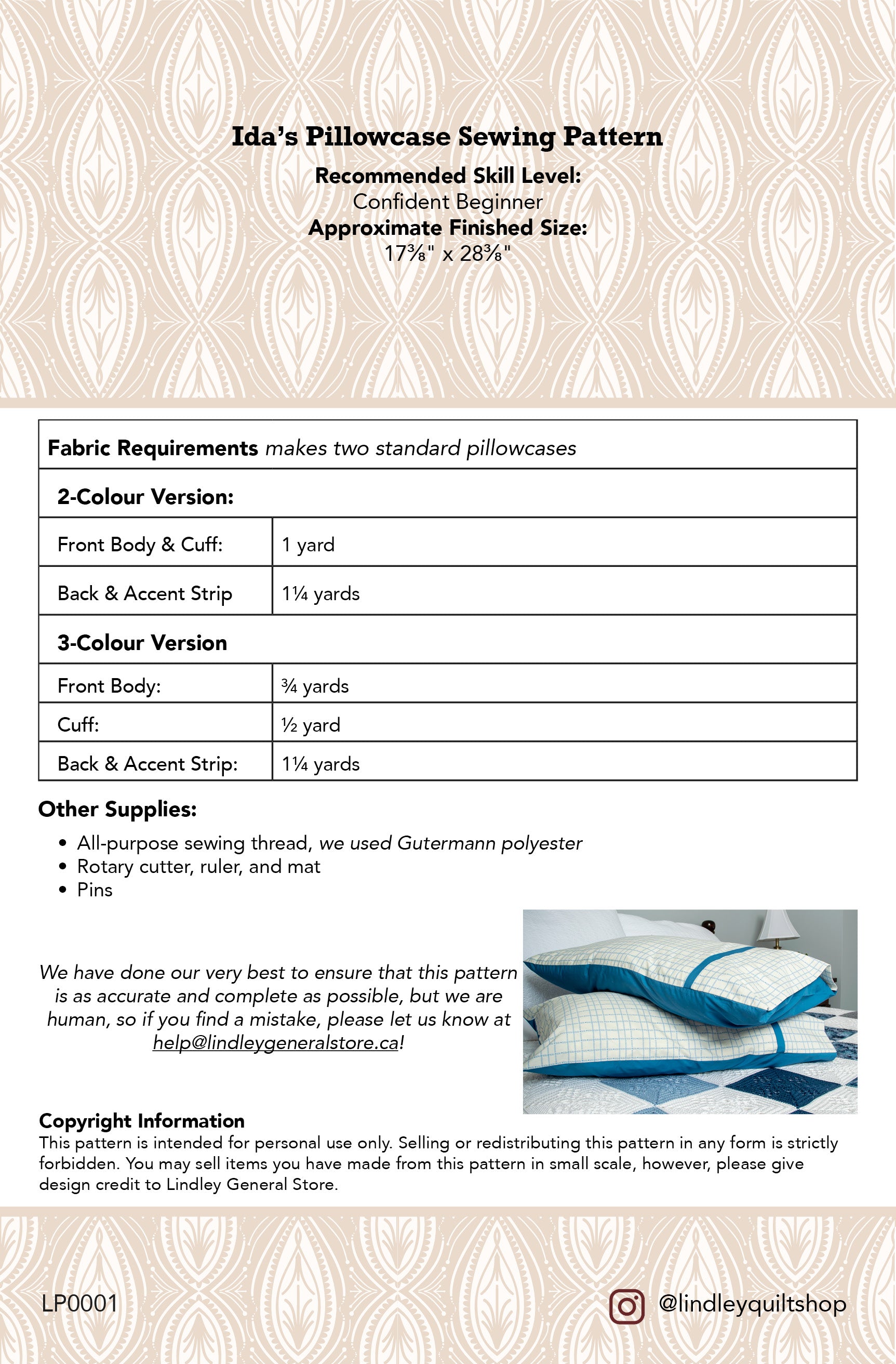 Ida's Pillowcase Sewing Pattern - printed
